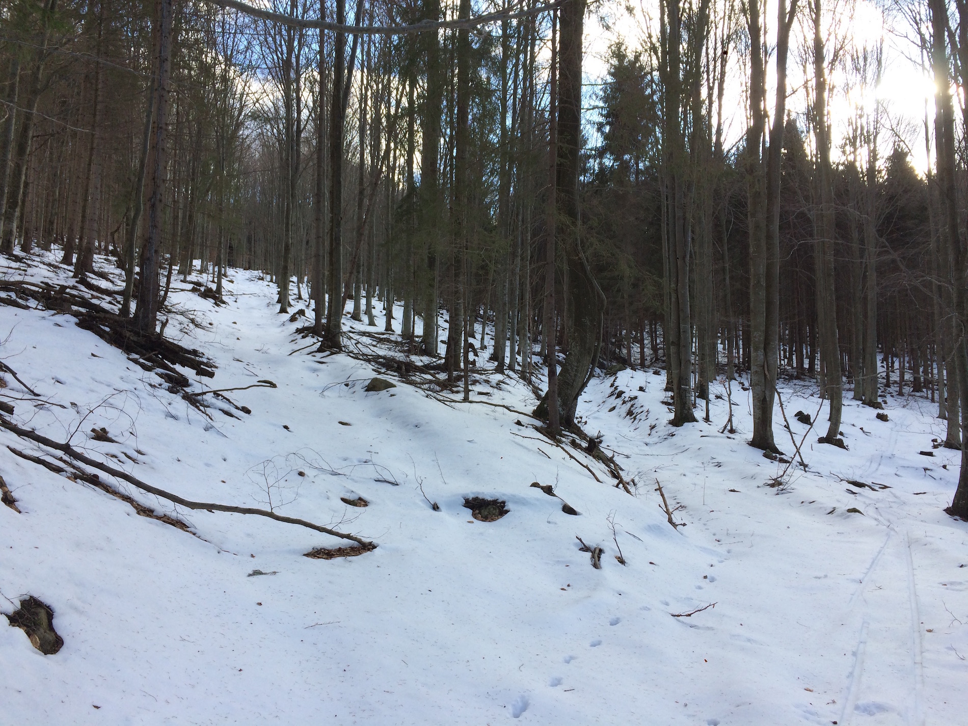 | vpravo je príklad úvozovej cesty, ktorej strmú časť autor obišiel lesom |