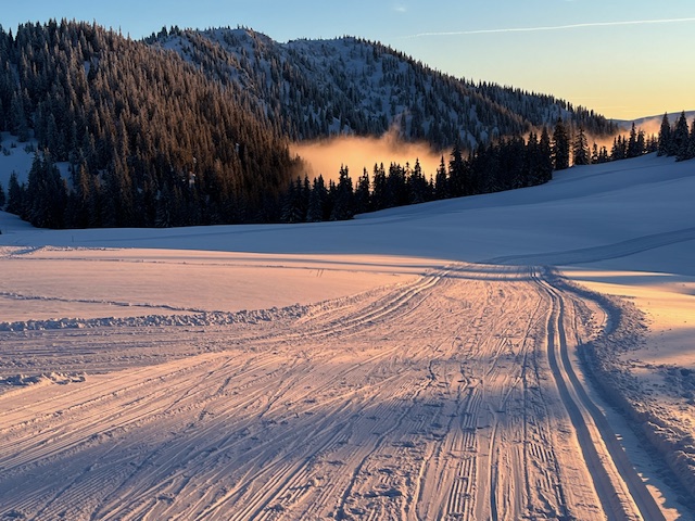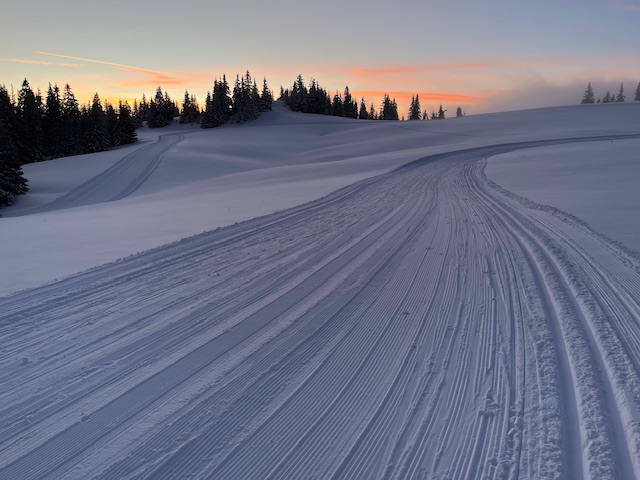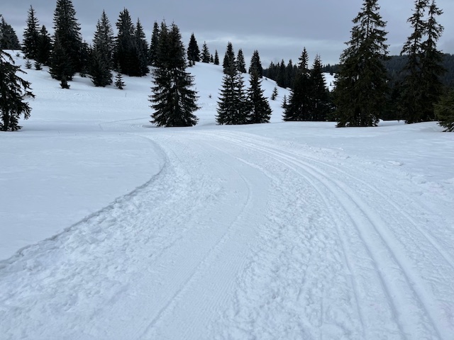 Napadlo 25cm nového prachového sněhu, běžkařské okruhy čerstvě upraveny.