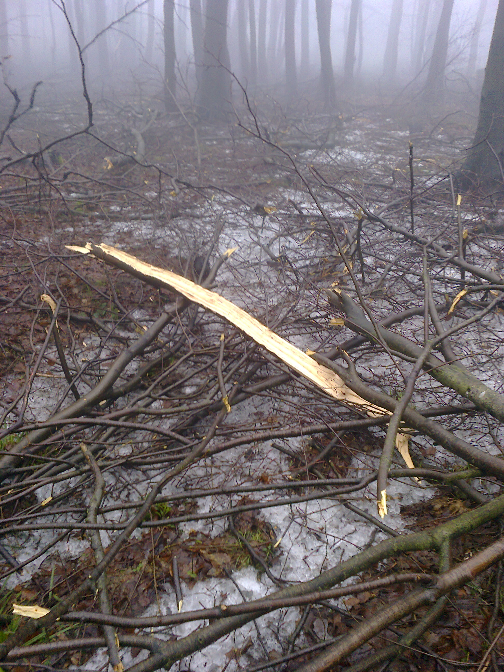 Tento vikend sme (4 bezkari/turisti/cyklisti z Devinskej) stravili cistenim chodnikov po kalamite. Vcera sme vycistili pristupovu cestu na hreben z Kosariska cez Volhovisko na Kozie chrbty a spat zo zelenej (od budy) cez Volhovisko na Kosarisko. Dnes sme vycistili asi 500m od 3KK smerom na Somar. Este zostava vycistit asi 1500m. Na trase Strateny kut - 3KK sme s obdivom zhodnotili pracu nasich predchodcov. Klobuk dole.
