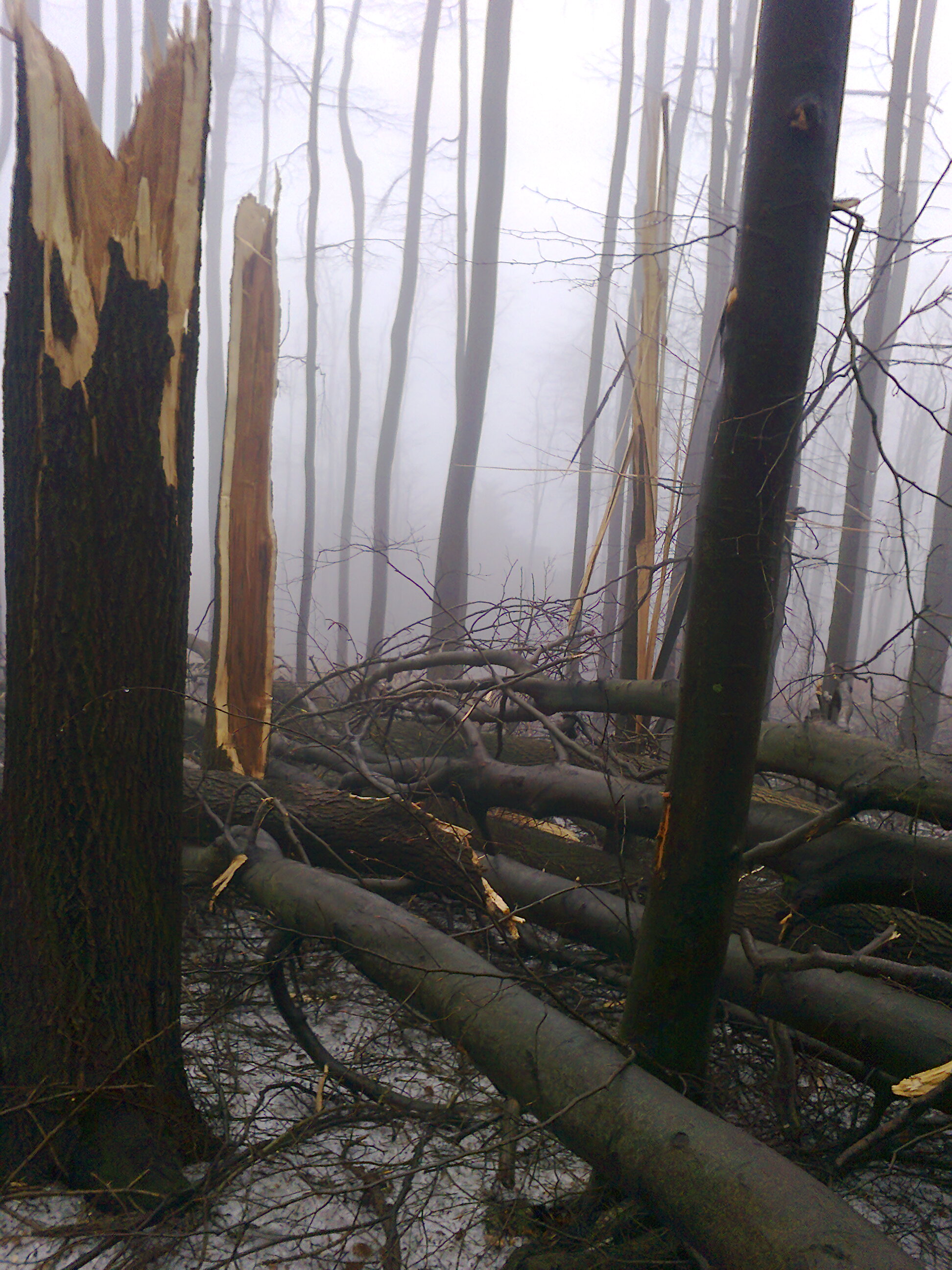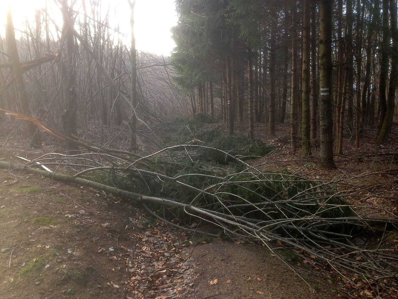 Najhorší úsek je medzi sedlom pod Skalnatou a Čermákom pretože sú tam popadané aj veľké stromy ktoré treba zoširoka obchádzať. Zdá sa že oblasť nad Zochovou chatou je postihnutá veľmi silno a myslím že tam bude potrebný zásah lesníkov vzhľadom na množstvo popadaných stromov. Neviem ktorá lesná správa to obhospodaruje, ale zistím.