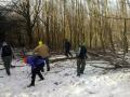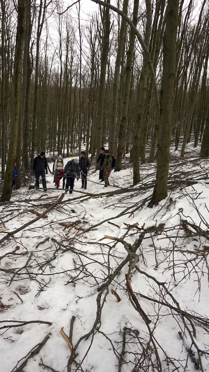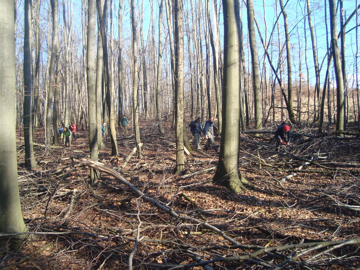 Dnes vyrazila partia z KST Limba turist (15 turistov vratane priaznivcov klubu) zo Svateho Jura modrou na Salas a zo Salasu po cervenej smerom na Biely Kriz. Les sme od ojedinelych popadanych konarov zacali cistit uz na modrej znacke cca. 1 km pred Salasom. Zo Salasa az k Silickemu pramenu sme cistili les od ojedinelych konarov. Pri Silickom prameni sme premostili potok dvoma vacsimi drevami, lebo tam bol problem prejst suchou nohou. Od Silickeho pramena zacinal silne kalamitny asi kilometrový usek, ktorym sme postupovali len velmi pomaly. Vdaka motorovej pile a dvom mensim pilkam sa podarilo trasu takmer uplne vycistit. Vynechali sme len par miest, kde boli hrube stromy a konare - tu sme prekliesnili lesom obchadzky. Pilili sme len mensie konare, niektore hrubsie sa nam podarilo odsunut nabok. Cistenie nam trvalo cca. 3 hodiny a skoncili sme ho niekde pod Malym Javornikom, kde zacinal rozbahneny usek vycisteny lesnymi robotnikmi.