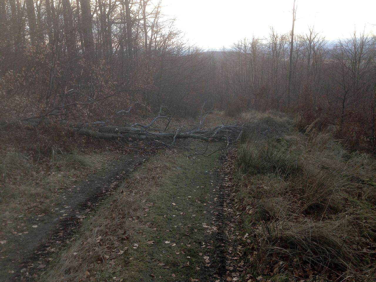Od sedla Javorinky som pokračoval po žltej vedúcej na Rybníček. Okrem dvoch stromov spadnutých krížom cez cestu je očistená, čím potvrdzujem informáciu z LS Pezinok, ktorí ju očistili spolu s cestou popod Čertov kopec a Skalnatú.