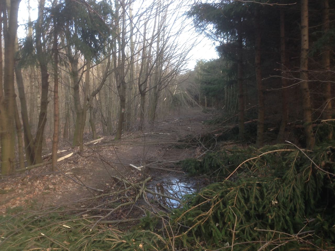 Maťo Kankara urobil včera túto fotku na 3KK. Je to pohľad od rázcestníka Tri kamenné kopce smerom na Juh k močarisku Nad Šenkárkou. Tam je úsek dlhý asi 1,6 km ešte nevyčistený.