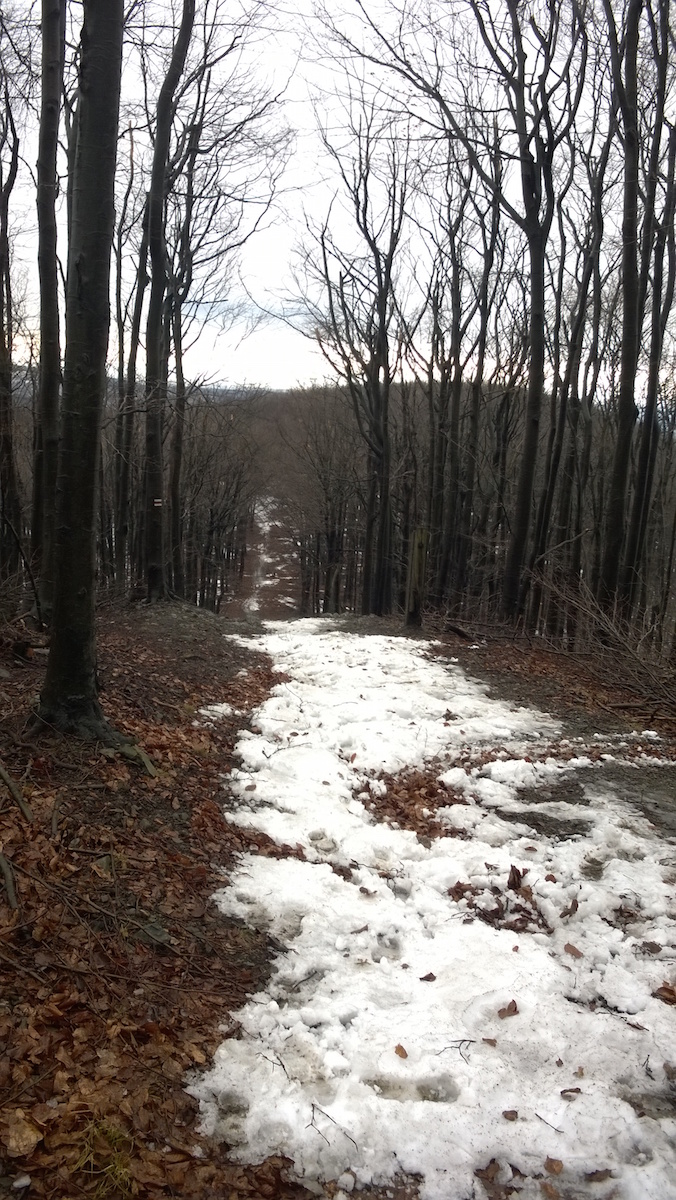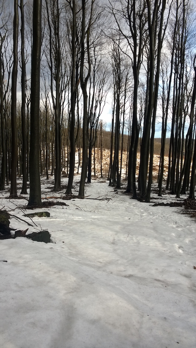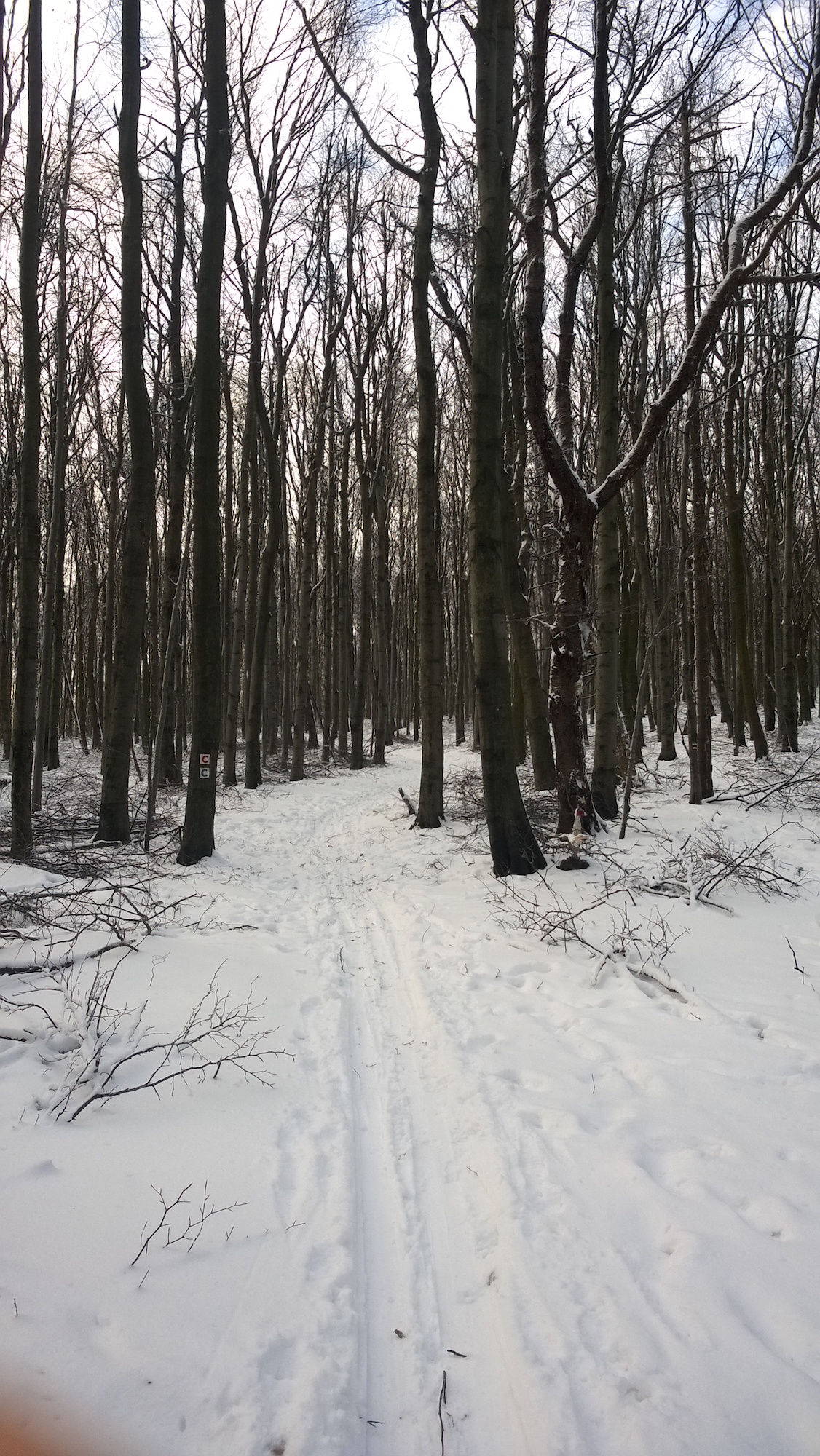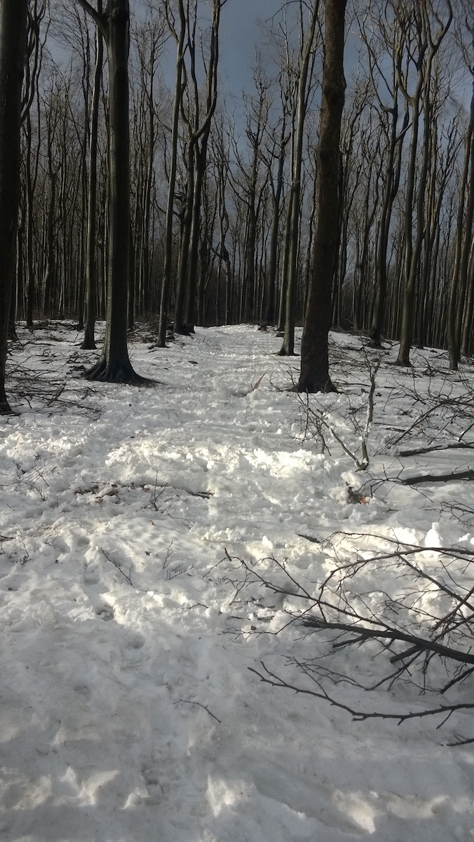 Z Baby som pokračoval po červenej k Čmelku pod ktorým som odbočil na bežkársku skratku. Až po miesto, kde sa odpája od cesty vedúcej na Čmelek je trasa priechodná, ale odtiať až po sedlo Javorinky sú pomerne riedko napadané vetvy, len na jednom mieste je cez trasu vyvalený hrubý strom. Tu je zopár fotiek z toho úseku: