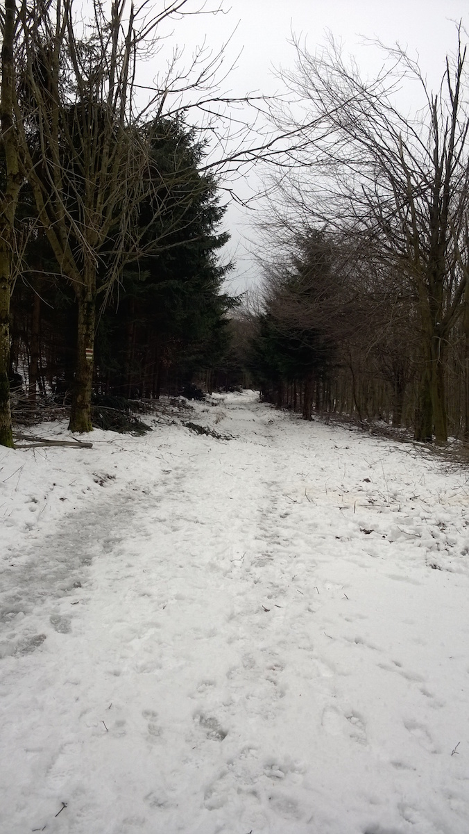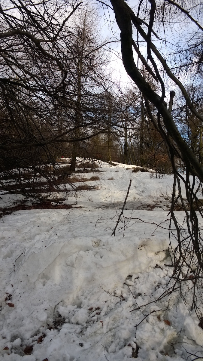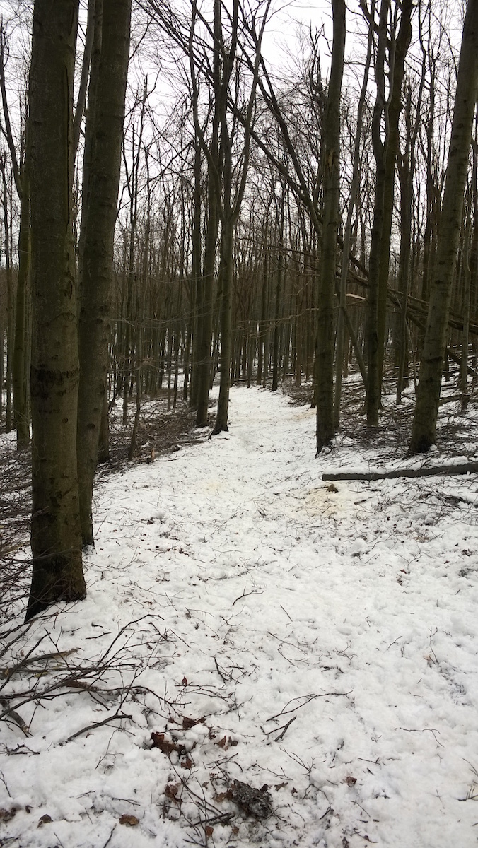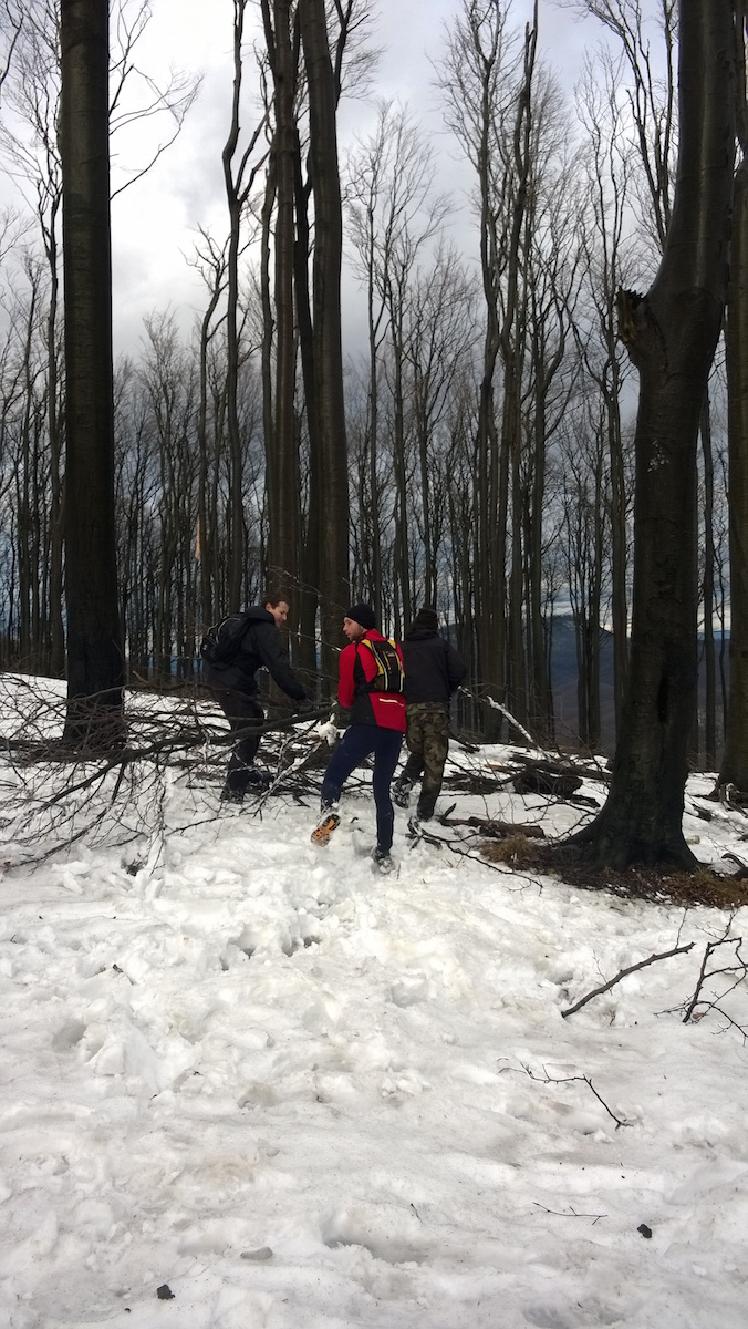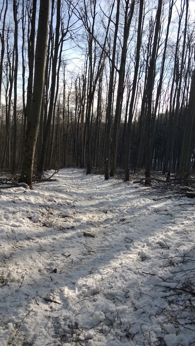 Z Baby som pokračoval po červenej k Čmelku pod ktorým som odbočil na bežkársku skratku. Až po miesto, kde sa odpája od cesty vedúcej na Čmelek je trasa priechodná, ale odtiať až po sedlo Javorinky sú pomerne riedko napadané vetvy, len na jednom mieste je cez trasu vyvalený hrubý strom. Tu je zopár fotiek z toho úseku: