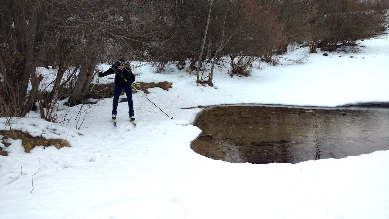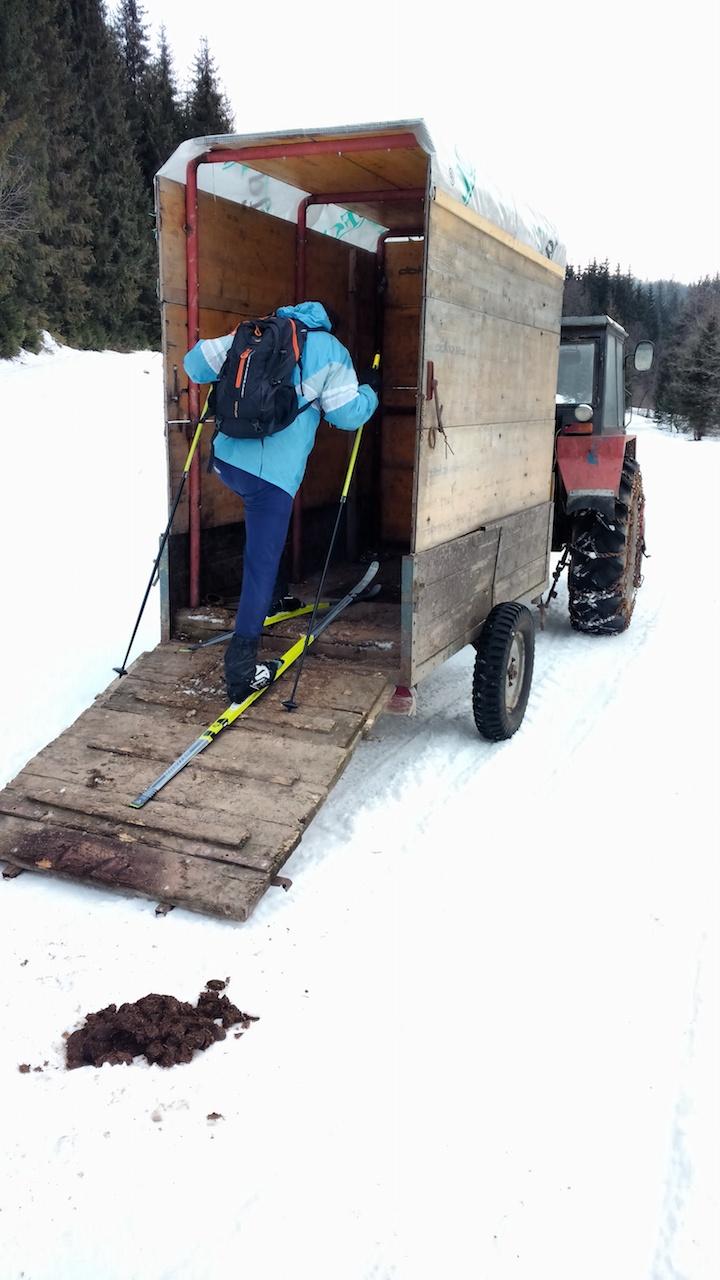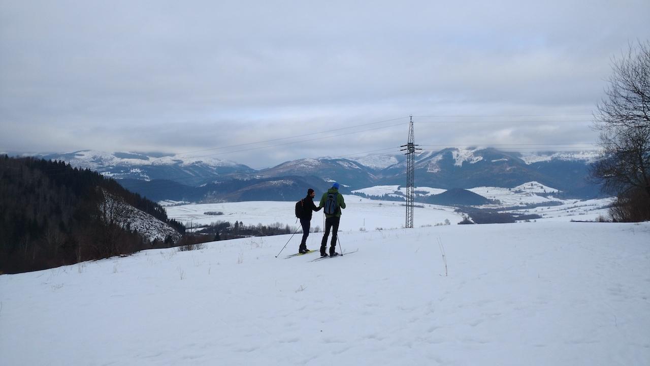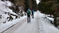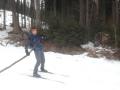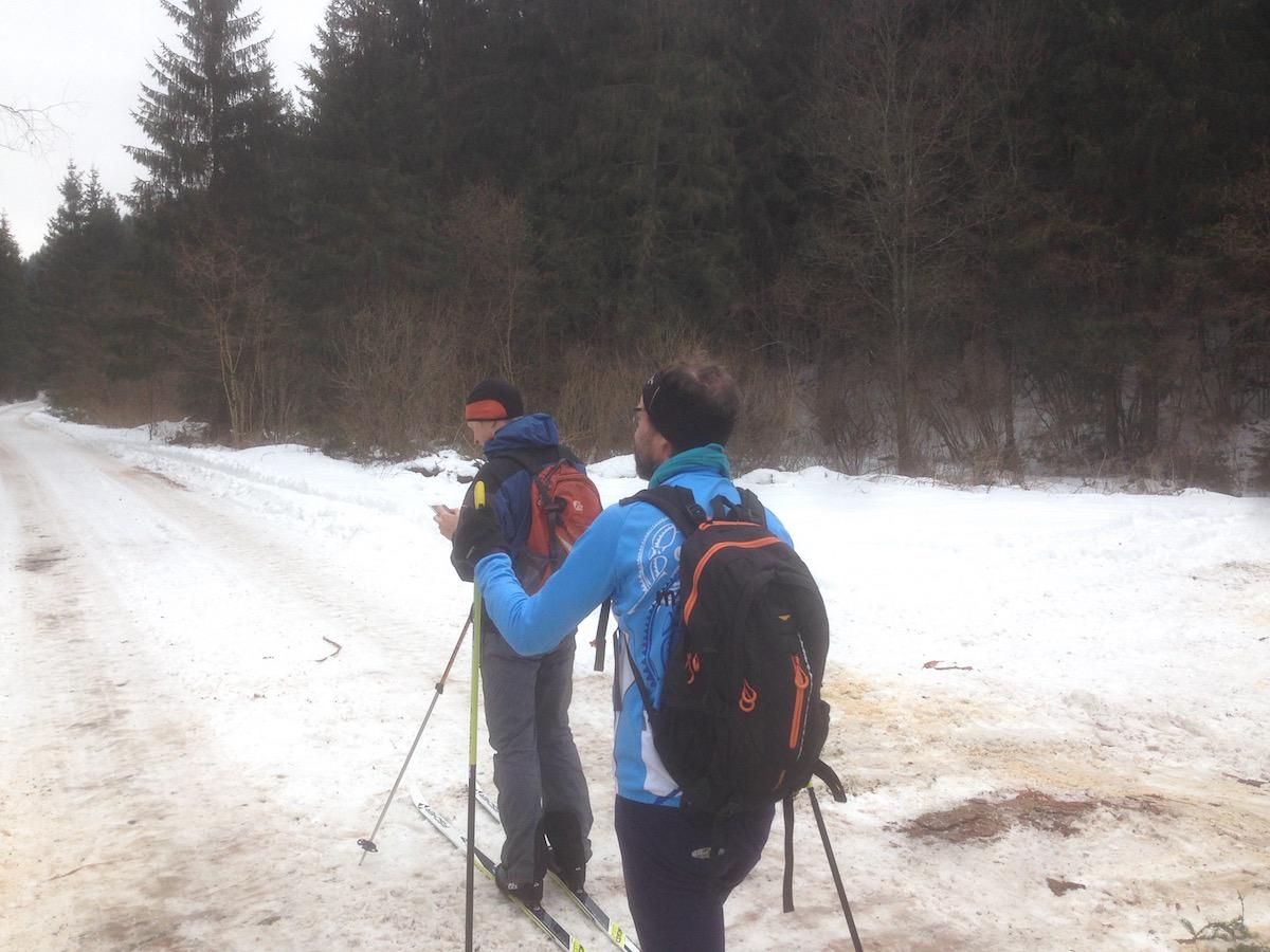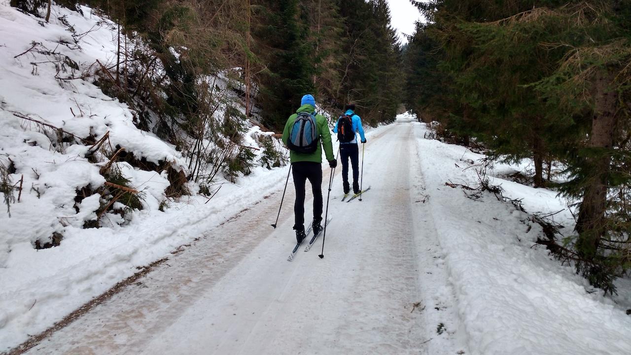 okruh sme šli proti smeru hodinových ručičiek. V dolinách je cesta odhrnutá (prebieha ťažba). Na ceste leží tenká vrstva snehu po ktorej sa ako tak dá bežkovať, ale žiaľ je tam aj dosť kamienkov z posypu. Kde sa dá je lepšie ísť mimo cesty popri potoku, a súhrnne sme asi 5km lyže radšej niesli.
